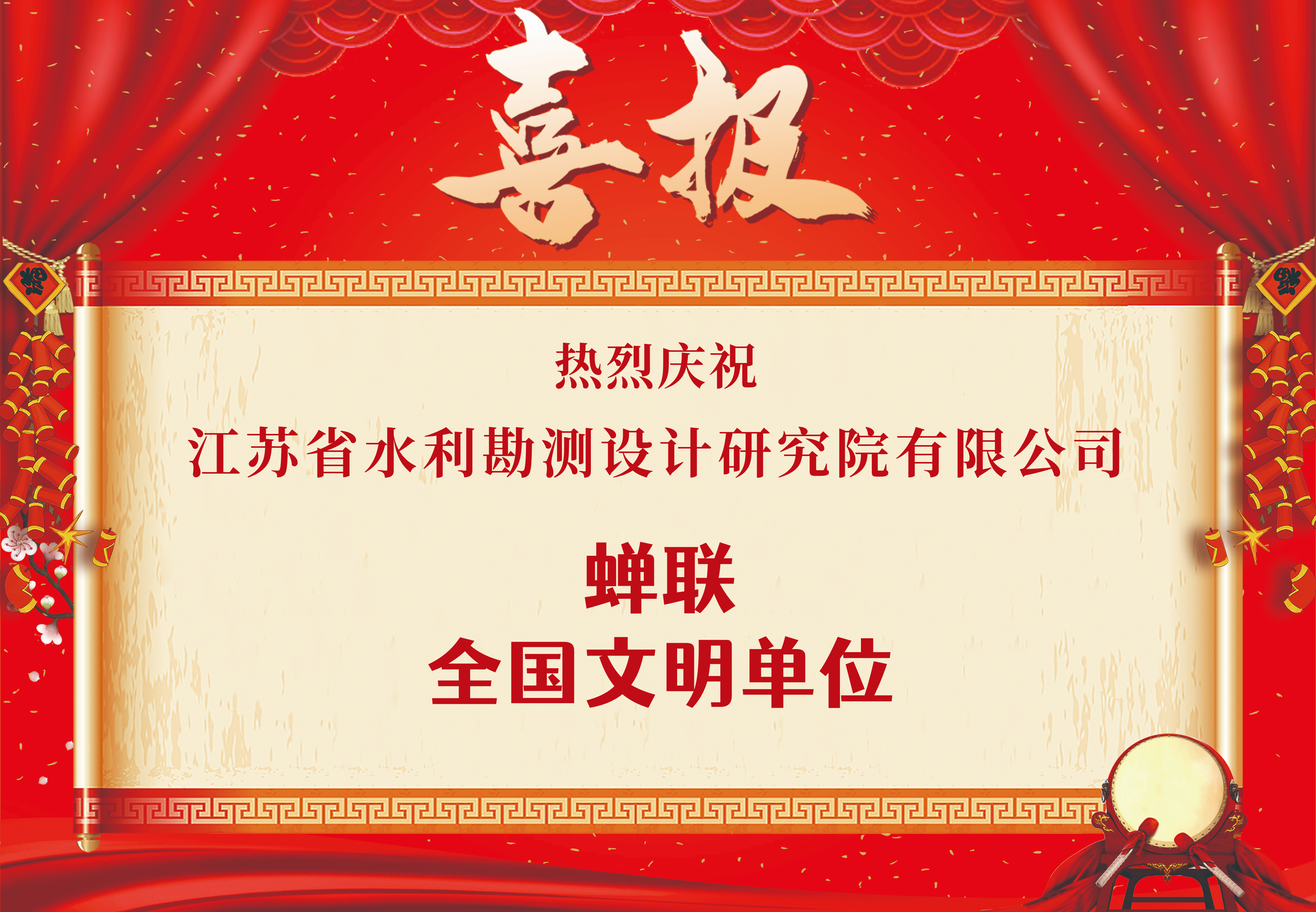 喜報(bào)!公司蟬聯(lián)“全國(guó)文明單位” 榮譽(yù)稱(chēng)號(hào)